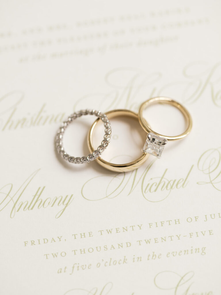 As the celebration continued, guests moved to the reception where the evening’s festivities began. Soon after, friends and family gathered for dinner and enjoyed delicious food together. Then, many guests made their way to the dance floor to celebrate the newlyweds. Meanwhile, chandeliers and soft lighting cast a warm glow across the space. Because of this, the setting felt both elegant and inviting, allowing guests to relax and fully enjoy the evening. Throughout the night, guests shared stories and laughter echoed across the room. By the end of the evening, the dance floor stayed full as everyone celebrated Christina and Anthony together.